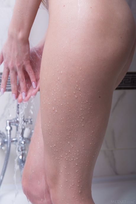Brunette teen Andrea Sixth removes her bikini before taking a shower