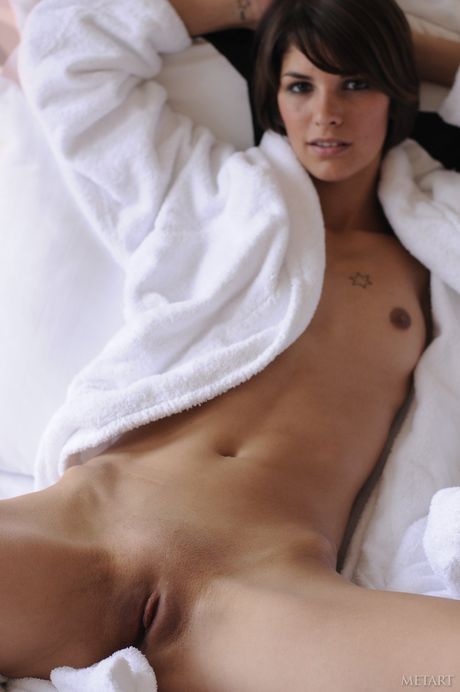 Brunette teen Demi A removes her dress to pose nude without shyness