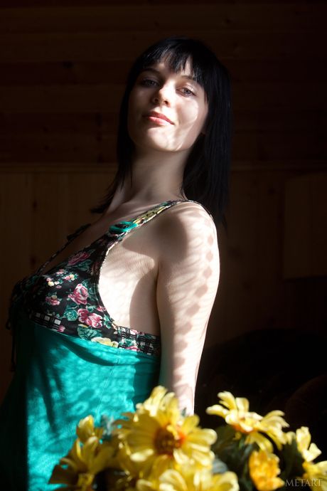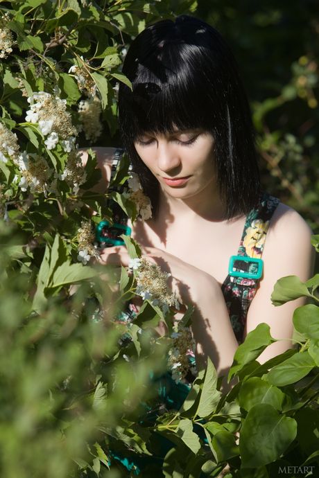Brunette teen Lo Lynn strips off on a rocky outcropping