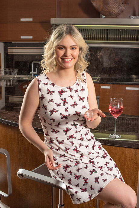 Busty teen Ruth removes a summer dress to get naked in the kitchen