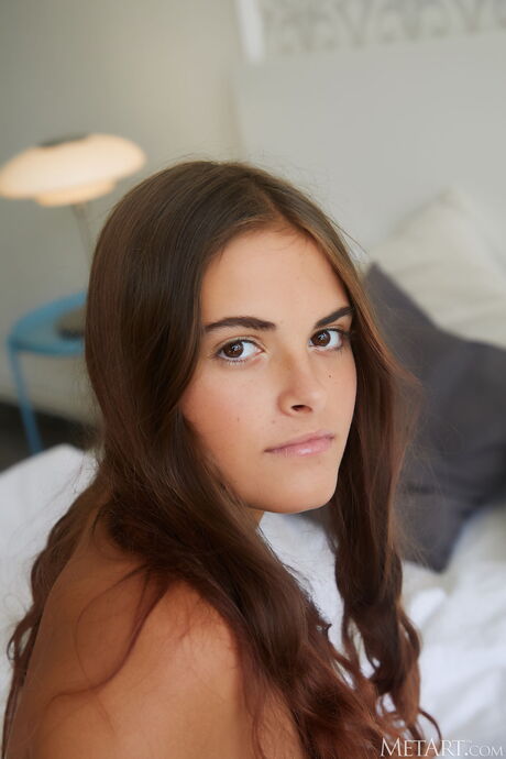 Charming teen with a slim figure Minnie reveals her tasty pussy