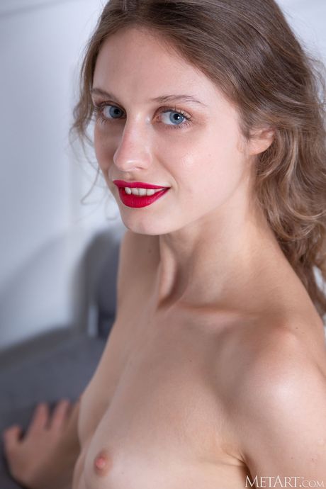 Cute teen Clarice removes a mask and lingerie to get naked without shyness