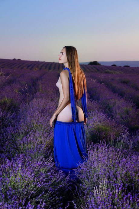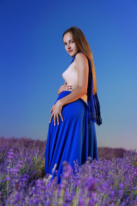 Cute teen Hailey strips naked in a field of lavender and poses by herself