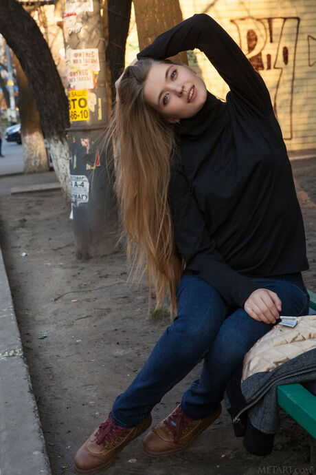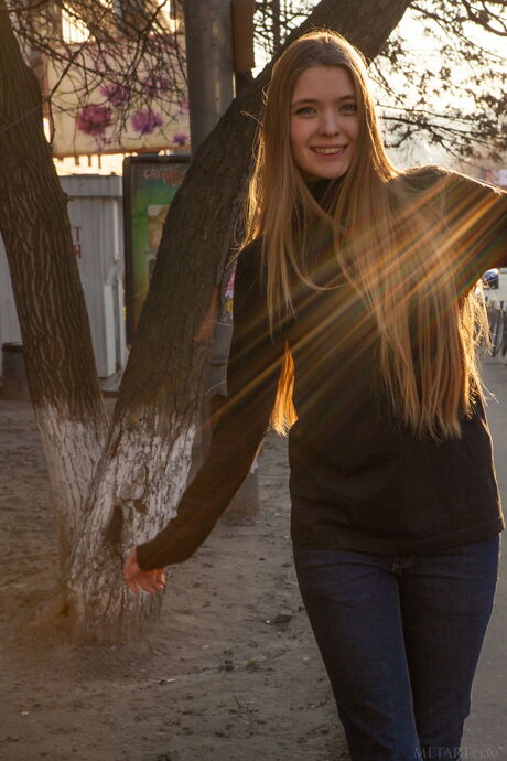 Cute teen Sigrid gets naked in a kitchen while wearing a tiara