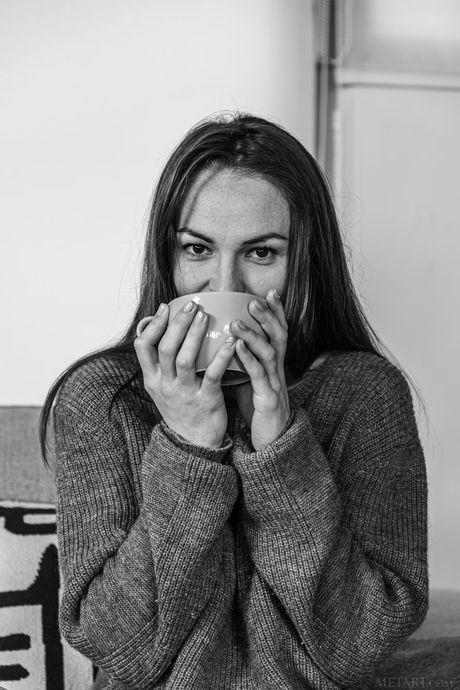 Cute teen Tanya Grace removes a sweater and socks to get naked enticingly