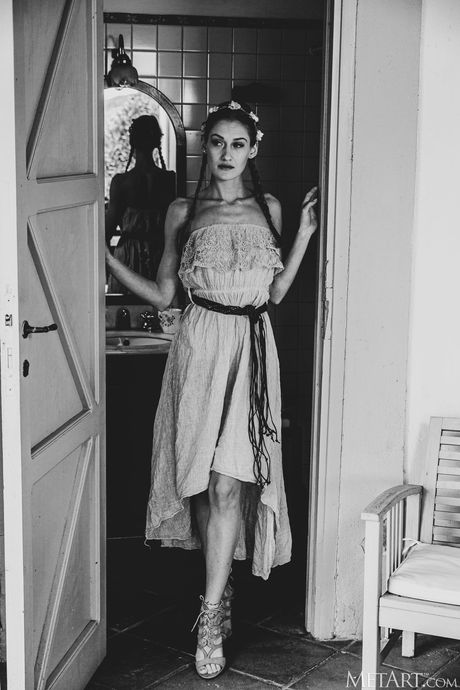 Cute teen Tiffany Tatum gets naked in pigtails and high heels