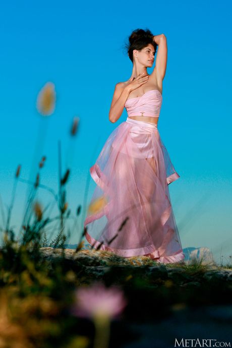 Cute teen Yasmina gets totally naked on a cliff overlooking the sea