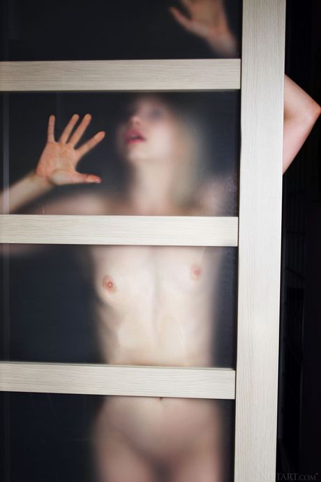 Dark haired teen Dominica removes her clothes to pose nude on a desk
