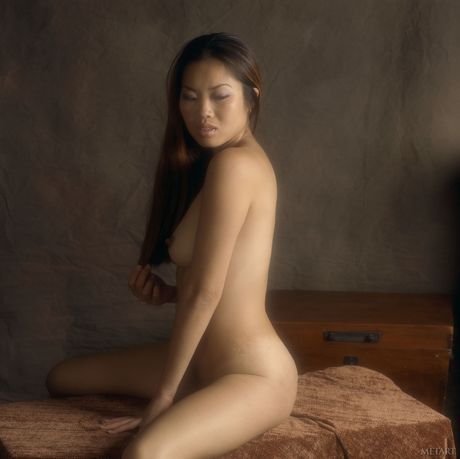 Delicate teen Arielle A presents her tiny tits and trimmed pussy in the nude