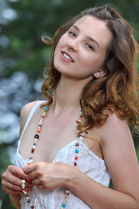 Delicate teen Ava removes her bikini and exhibits her tiny tits and twat outdoors