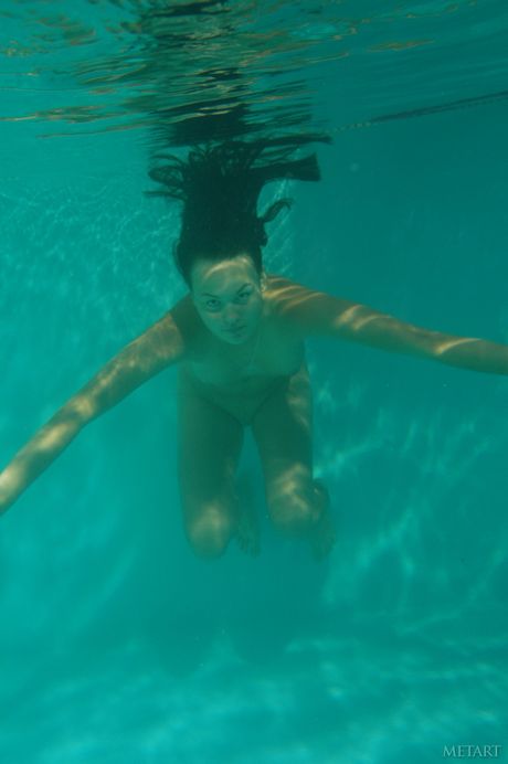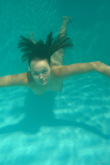 Delicate teen Lenka B gets naked in the water and shows her tits and twat