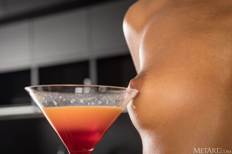 Delicate teen Melena A removes her lingerie to pose nude in the kitchen