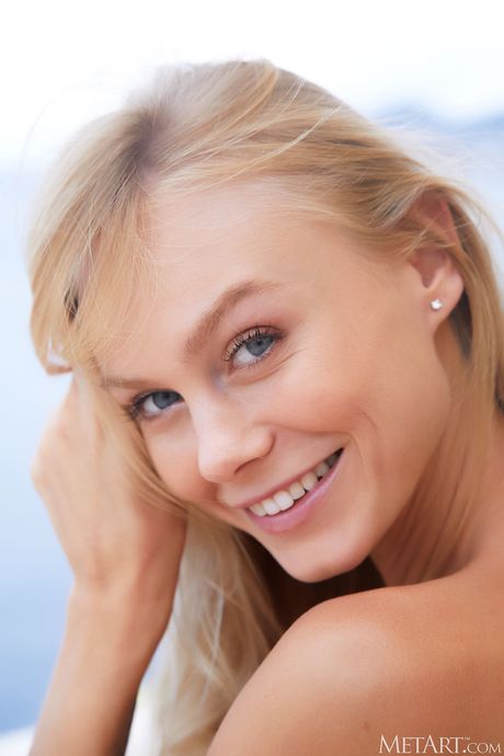 Delicate teen Nancy A gets naked on the terrace of her beach house and poses