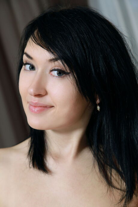 Delicate teen Ramina removes her lingerie and stockings to pose nude
