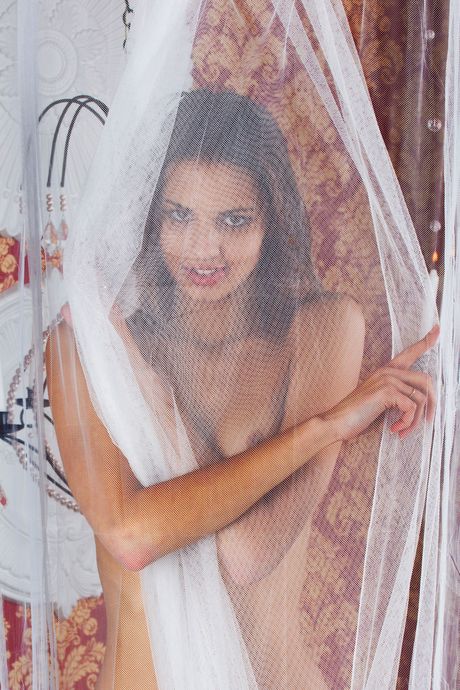 Delicate teen Sandra Lauver exhibits her big tits and poses nude