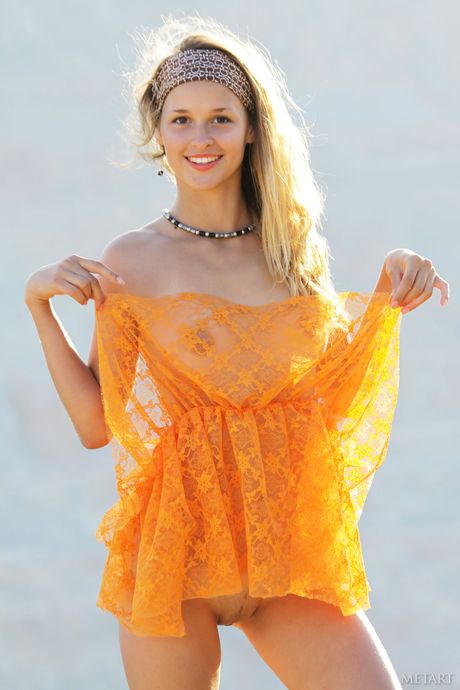 Delicate teen Toxic A strips naked & highlights her small tits & bald pussy outdoors