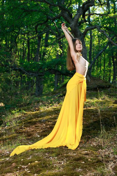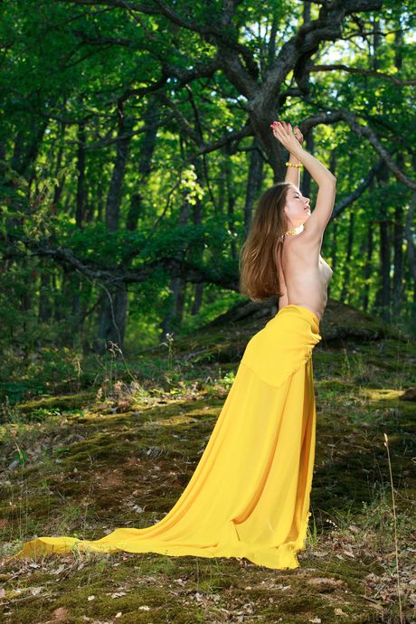 Delightful teen Vivian goes naked in a forest while wearing a necklace
