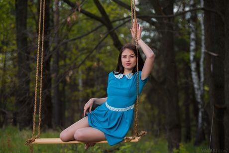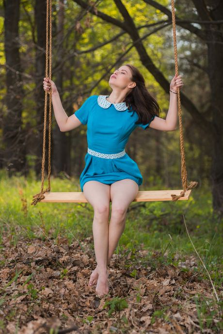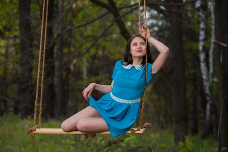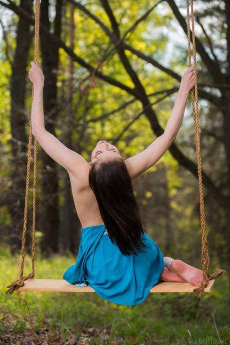 Desirable teen Hilary C strips naked and plays with a rope swing in the backyard