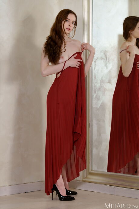 Elegant beauty Loren Sun isnt wearing panties beneath her long red dress