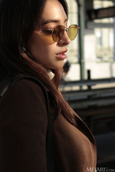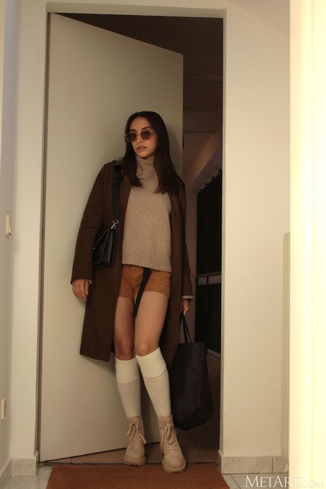 Endearing teen Olivia Linz gets naked in a kitchen while wearing sunglasses