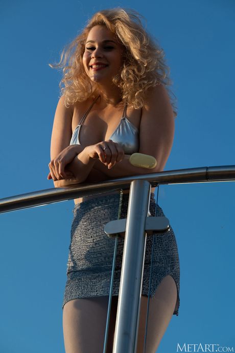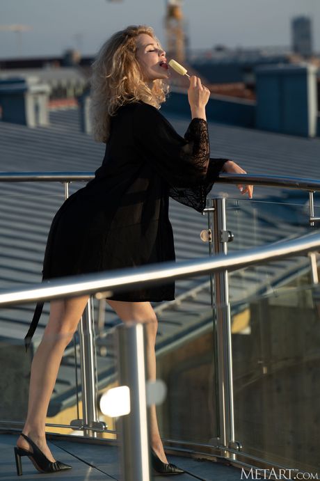 Gorgeous blonde teen Helena gets naked boldly on a table