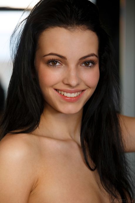 Gorgeous teen Sapphira A removes her sweater and panties to pose nude in heels