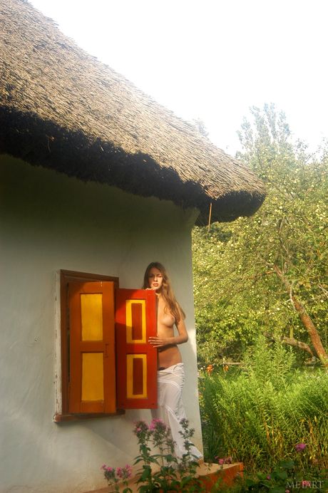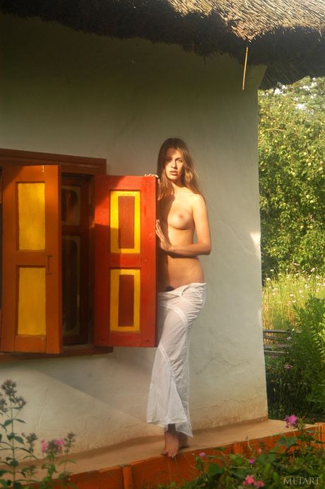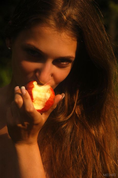 Gorgeous teen Vika AC strips naked in the garden & spreads her hairy pussy