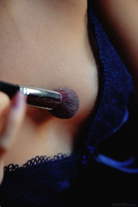 Hot teen Mya removes her lingerie and demonstrates her big tits and twat on a bed
