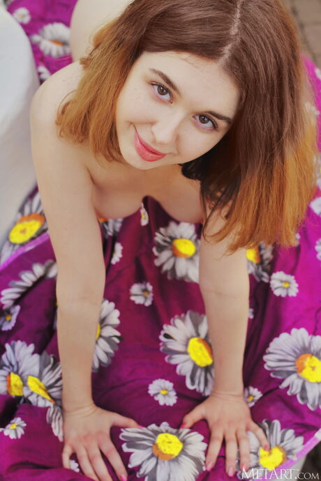 Hot teen Riccarda models totally naked on a patio chair in the sun