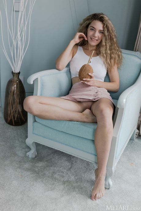 Innocent teen Kiere gets completely naked on a chair without embarrassment