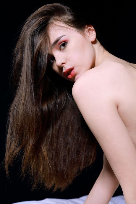 Intriguing teen Eva Amari removes her lingerie to pose nude without shyness