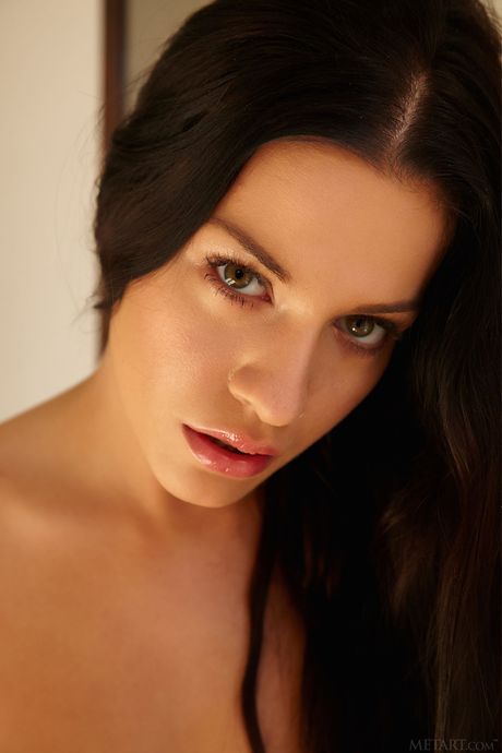 Intriguing teen Eveline removes her red heels and bikini to pose nude