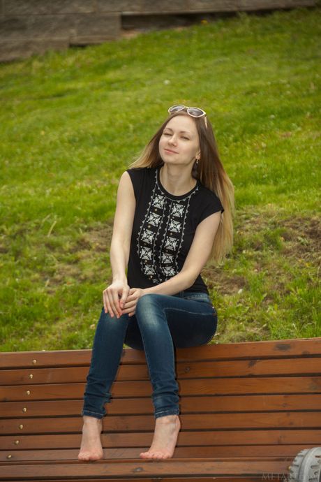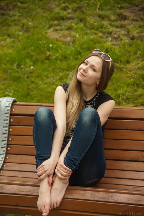 Intriguing teen Lenore gets naked in the bathroom and washes her big tits and pussy