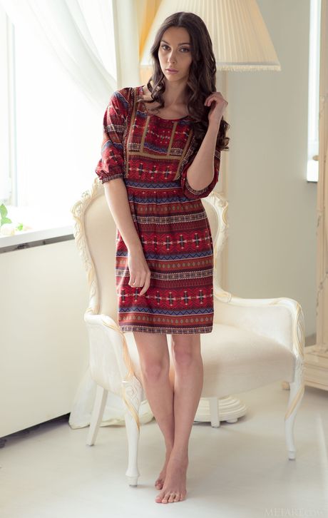 Intriguing teen Magali A removes her dress to model in the nude