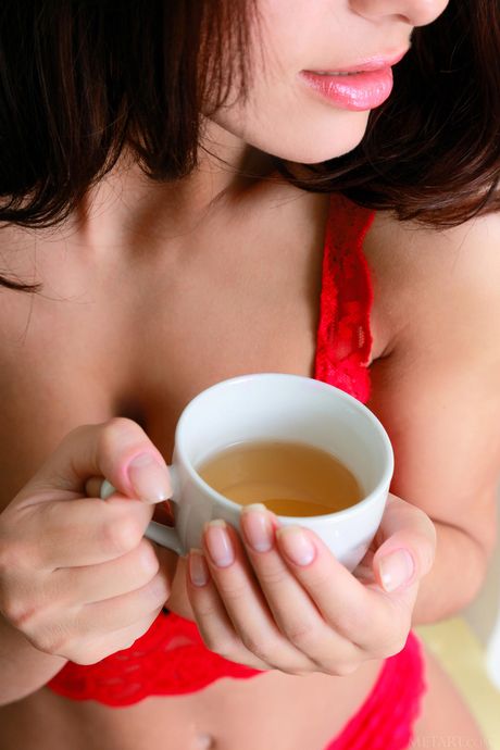 Intriguing teen Mila M removes her lingerie and shows her big tits and twat
