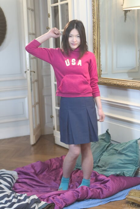 Japanese teen Asuka A removes her clothes and poses naked in a solo