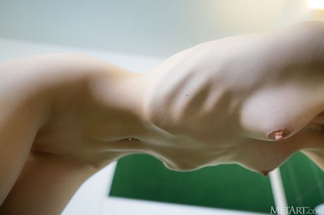 Kate Quinn gets naked during a yoga session and shows off her slender