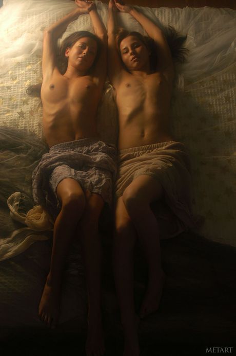 Lean teen Barbora A & Yana A show off their beautiful bodies in the nude