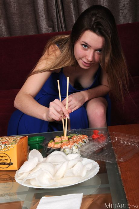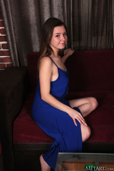Lean teen Elvera removes her catsuit and poses nude in a hotel room