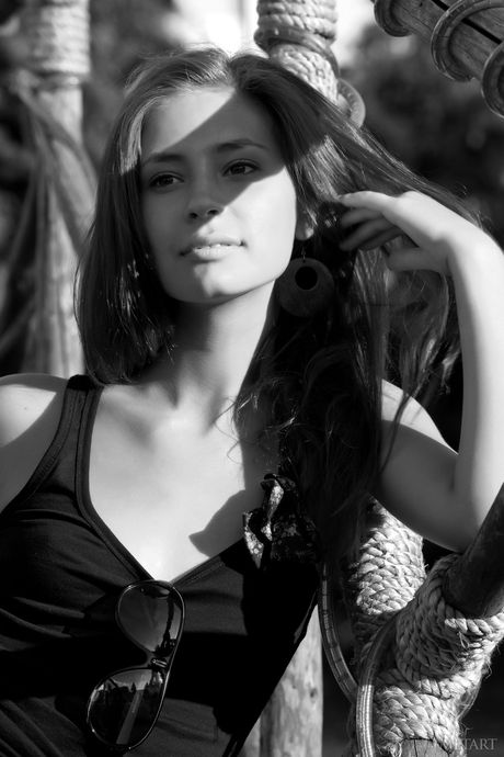 Lean teen Irina J strips & gets her pussy creampied in a studio