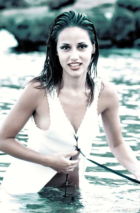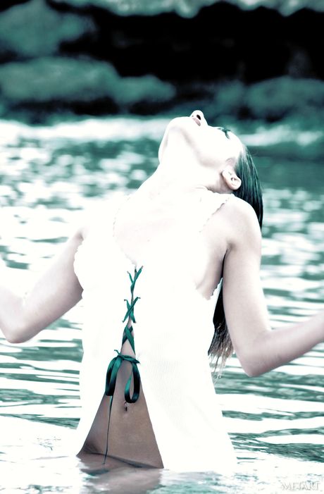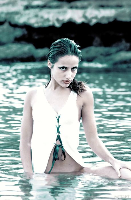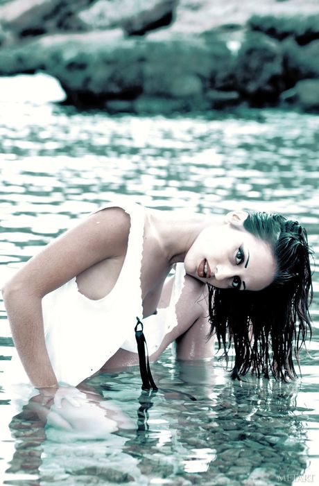 Lean teen Liliana exhibits perfect shape on a rocky beach & shows her tiny tits
