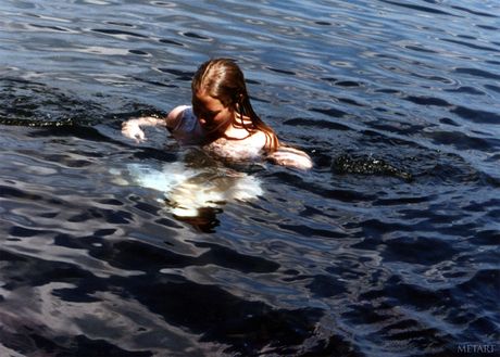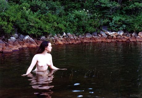 Lean teen Ronin gets naked in the water and poses in the sun