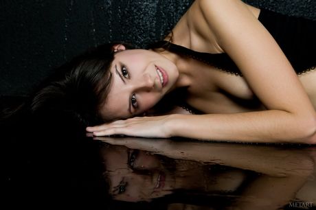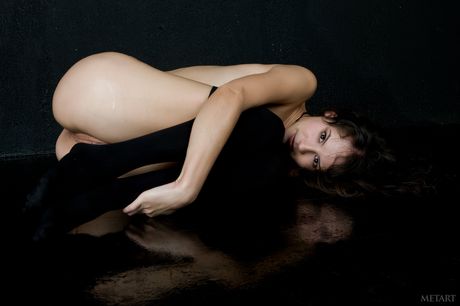 Lean teen Swan A demonstrates her small tits and poses in stockings