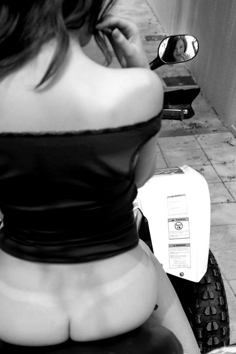 Lovely teen Alice May strips naked & poses on her quad bike in the countryside