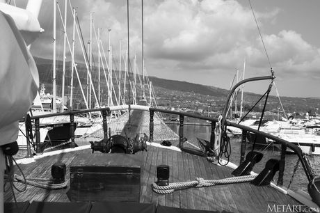 Lovely teen Eve Sweet gets naked on a boat while wearing a bikini
