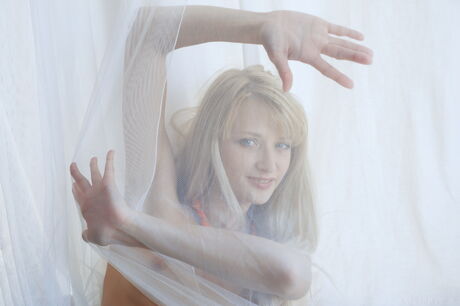 Lovely teen Nika N removes her lingerie to pose nude with grace
