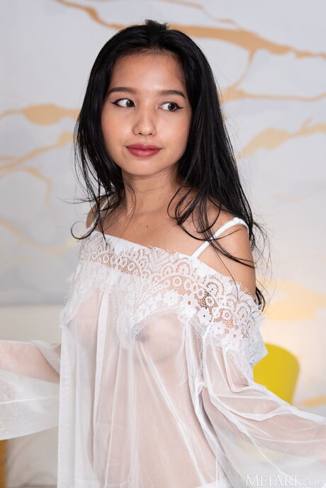 Lovely teen Norah removes a bikini and lingerie to pose nude on a bed