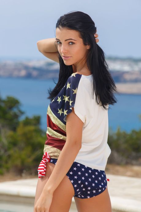 Lovely teen Sapphira A gets naked while in a pool during solo action