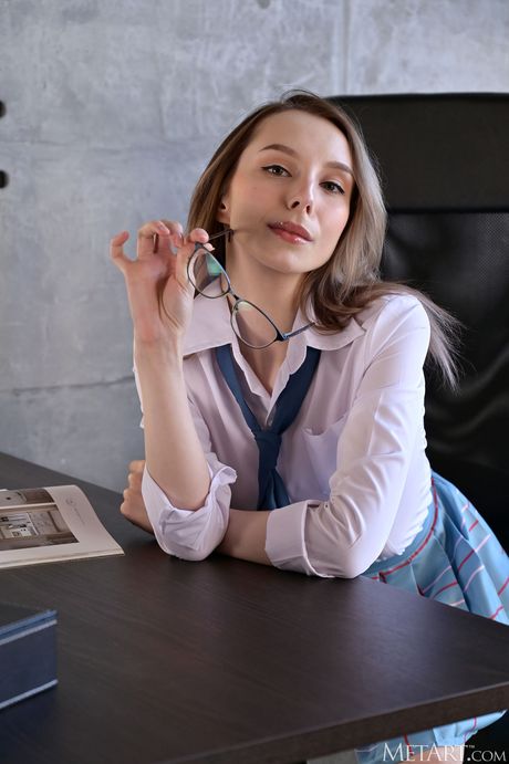 Lovely teen Tora Reeves gets naked on her desk before masturbating