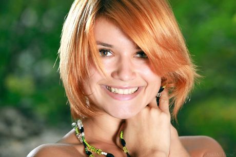 Lovely teen Violla A reveals her naked form in a forest & highlights her big tits & hot ass
